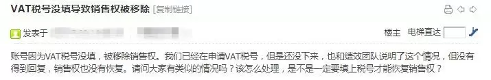 卖家因为VAT税号没填,被移除销售权。这种情况比较常见,特别是近期欧洲站亚马逊VAT相关政策收紧,不断向卖家发送VAT邮件通知,提醒卖家在指定的时间内按要求上传VAT税号。如果卖家在按规定要求上传VAT税号,产品将无法入库,被亚马逊移除销售权。
