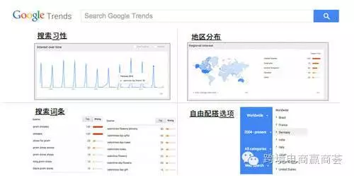 谷歌趋势分析法是指,利用谷歌的数据分析工具,对企业外部的行业信息和内部的经营信息进行分析,并挖掘出有价值的信息,以此作为选品参考,即通过Google Trends工具分析品类的周期性特点,通过Keyword Spy工具发现品类搜索热度和品类关键词,通过Google Analytics工具获得已上架产品的销售信息,分析哪些产品销售好,整体动销率如何等。