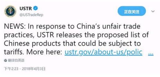 北京时间4月4日凌晨(美国当地时间4月3日下午5点半左右),美国贸易代表办公室(USTR)按照特朗普总统之前的要求,公布了一份拟对中国产品加收关税的清单。