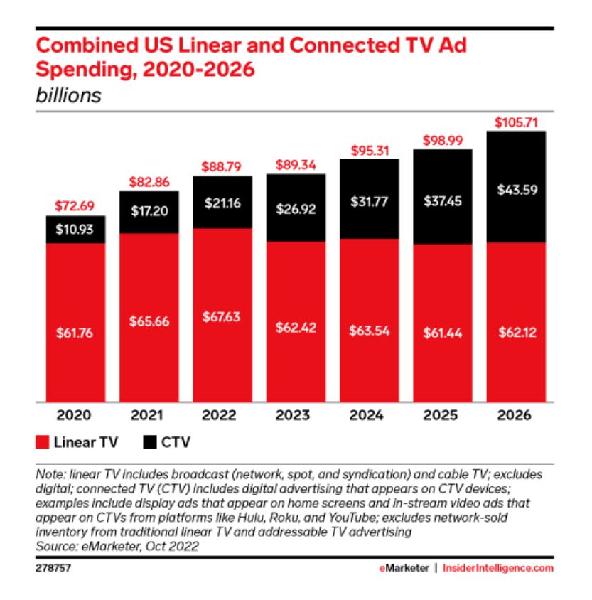 广告收入从电视向零售媒体的迁移,主要是因为一些零售公司正在强势进入CTV领域。例如,亚马逊正在通过其广告支持的视频内容,包括其对美国橄榄球联盟周四晚间足球赛的独家授权和其广告支持的Freevee流媒体服务,来加强市场地位。而其他零售商正在通过与数字广告公司合作实现增长,例如沃尔玛与The Trade Desk以及Kroger与Roku的合作。