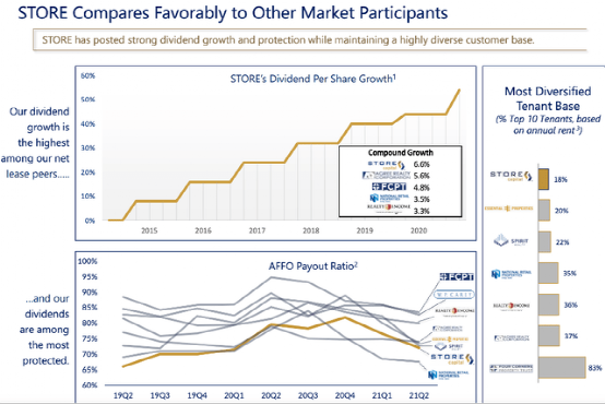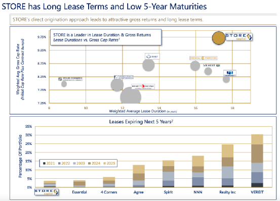 与大多数竞争者相比,STORE拥有更高的资本利率上限和更长的租约。