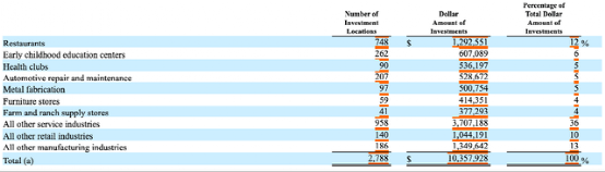 STORE专注于利润中心的房地产。这意味着,他们希望拥有租户的商业运作创造收入和利润以支付租金的房地产。虽然STORE的租户可能不像其他净租赁房地产投资信托基金那样是投资级的,但STORE的租户几乎都为每处房产提供单位级别的财务报表,使STORE有能力密切监测每处房产的业务表现。
