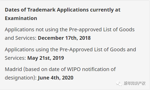 商标审查提出后,30个月内会分配给审查员进行可注册性审查。以下为官方公布最新审查进度(以本文推送日为参考:2021.10.21):