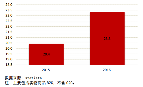 南非电商处于初级发展阶段,目前规模较小,但近年来有加速发展的趋势。2016 年南非网络零售规模达 23.3 亿美元,较 2015 年同比增长 14.2%。