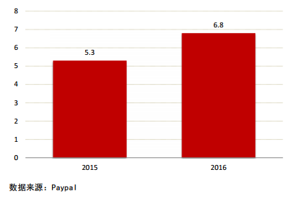2016 年南非跨境电商进口零售额约为 6.8 亿美元,比2015 年增长 27.5%,预计 2017 年将超过 9 亿美元。