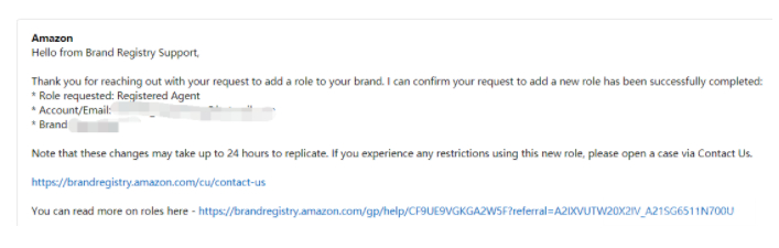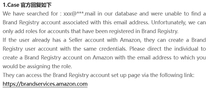一种解决方式,是直接换成rights owner,然后就会收到备案成功的邮件了,但是这样可能会导致无法使用品牌功能,需要添加品牌节点,也需要一个站点一个站点的开case去解决。
