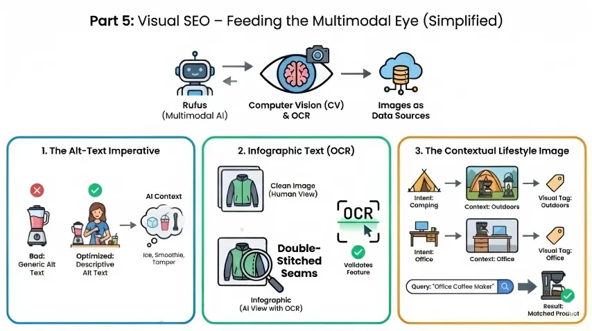 Rufus 是多模态 AI,能通过 CV 和 OCR 技术 “看” 图片、读文字,2026 年的商品图片,不只是给人看,更是给算法 “喂数据”!
