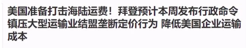 还有镇压大型运输业结盟垄断定价行为,借此降低美国企业的运输成本,以解决新冠疫情以来运费高涨不跌的难题。