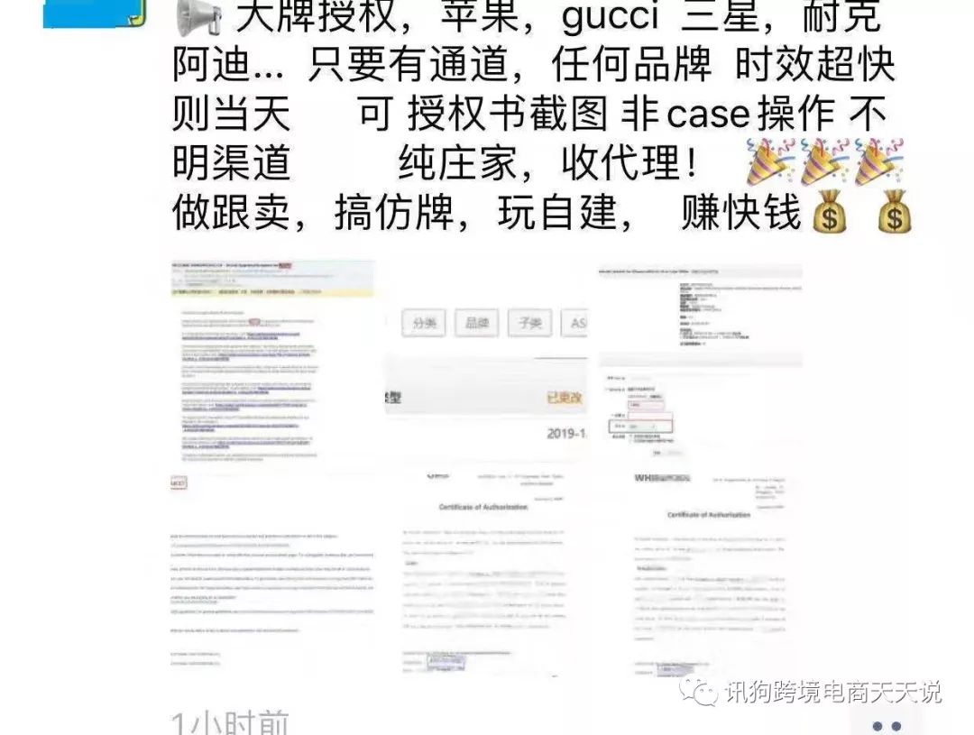 我马上可以利用我的技术积累,把卖Gucci需要提供的一系列授权资料提供给你,