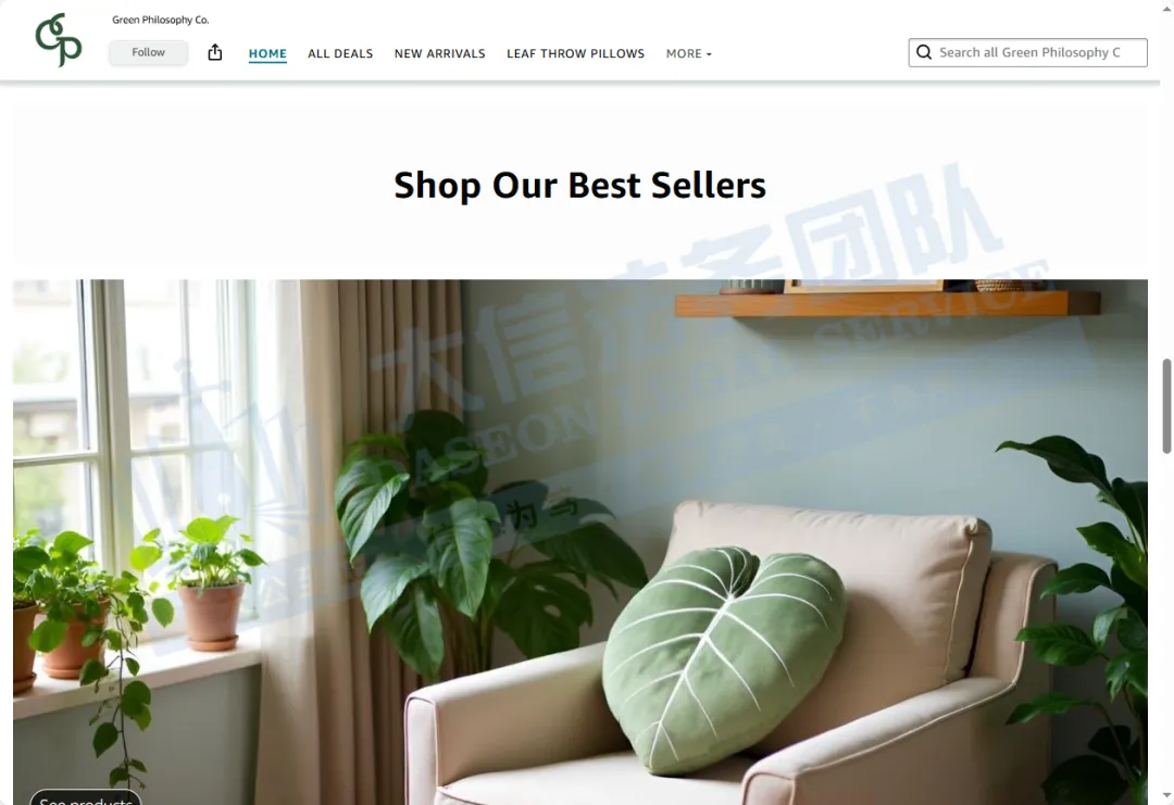 原告是一家于 2018 年创立的美国公司。该公司致力于打造统一品牌下受自然启发的家居装饰,提供一种新鲜、轻松的方式将植物的精髓带入任何生活空间。GREEN PHILOSOPHY 的产品种类丰富,包括如抱枕、毯子和杯垫等的家居装饰品;以植物为创作灵感,增添生活空间的艺术氛围的艺术品;既能锻炼思维能力,又能享受植物主题的乐趣的益智玩具,深受人们的喜爱!