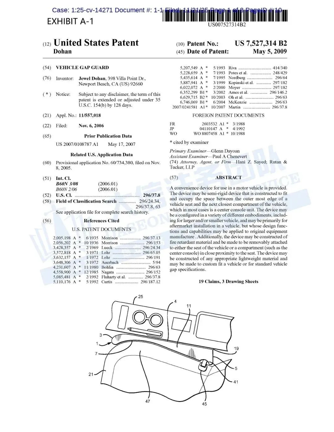 Vehicle Gap Guard(车辆缝隙防护垫)是美国发明人Jonathan Kotyk研发的专利汽车用品。它专为填补前排座椅与中控台间的缝隙设计,有效防止手机、钥匙等小物件的意外滑落。该产品有效提升了驾驶安全性,避免因弯腰捡拾物品引发的风险,是注重行车安全与车内整洁的实用解决方案。