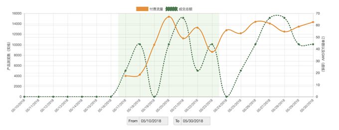 下面一起来看一个商户案例。在产品推广活动之前,销量增长比较缓慢;而参加之后销量开始迅速增长。