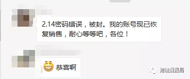 今天Andy收到了很多朋友的好消息,之前2.14被封的账号现在经申诉后已拿回销售权限