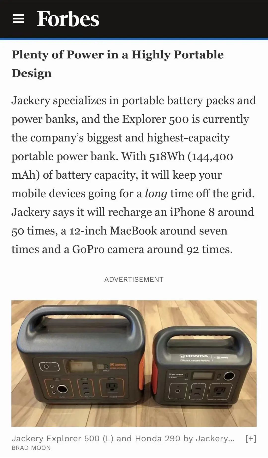 在站外,Jackery也有大量的产品测评和推介,当中不乏Forbes、NY Times这种顶流媒体。