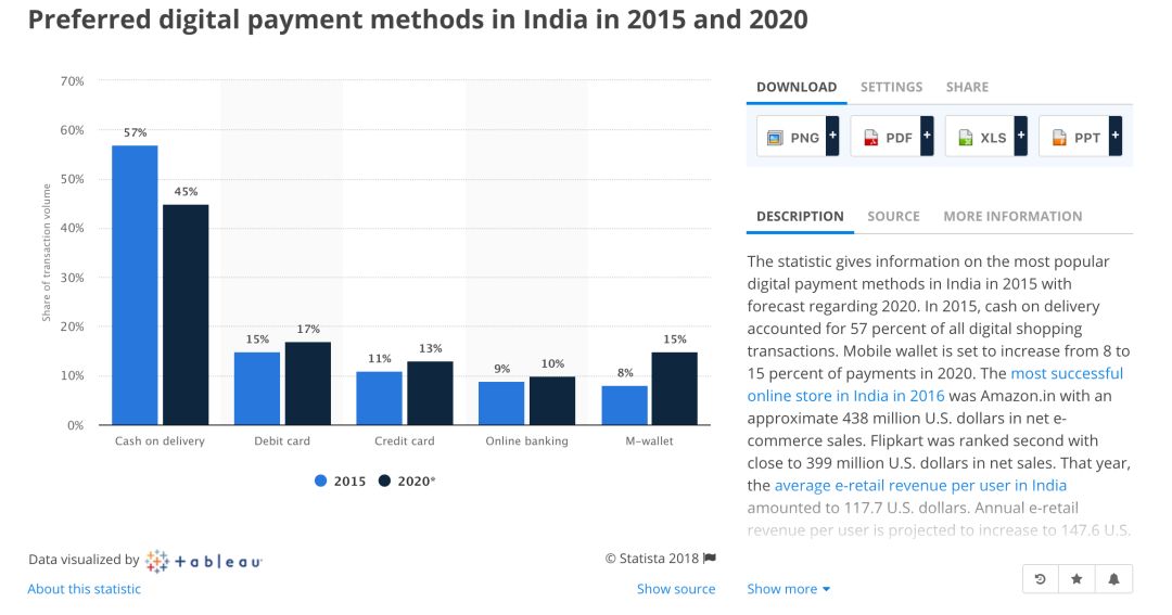 从现在到2020年,印度的货到付款方式将仍然占据绝对优势