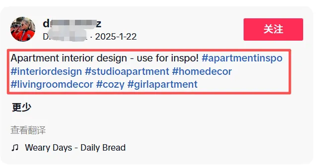 更推荐使用长尾垂直词,#SensitiveSkinCare、#MinimalistApartment、#NoEquipmentWorkout 这类更明确的标签会在算法中发挥意想不到的作用。