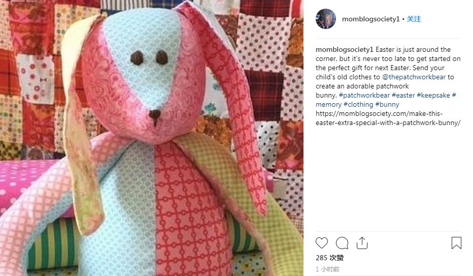 今年,许多商家依旧利用复活节打造独特的品牌形象。比如MomBlogSociety在ins发起一个互动营销活动。他们号召父母们带上孩子,一起用旧衣服制作玩偶兔子,这个创意活动获得粉丝们一致好评。