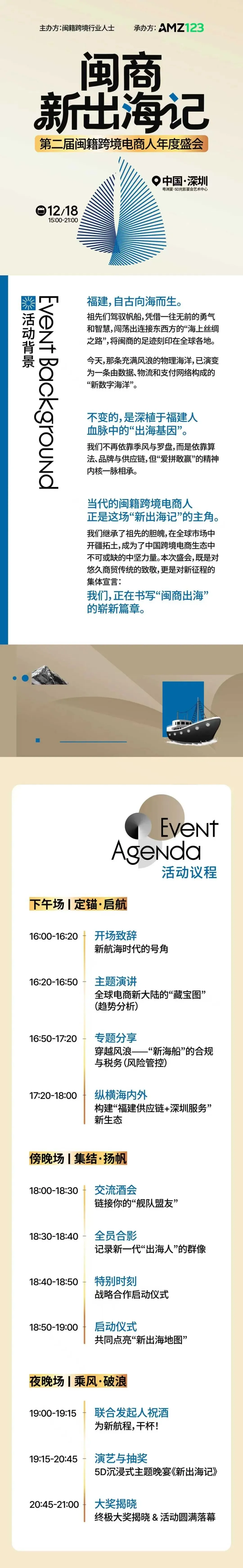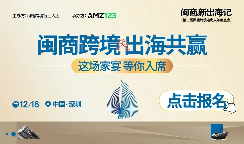 为此,闽籍跨境行业人士&AMZ123将于12月18日在深圳粤洲宴·5D光影宴会艺术中心举办「闽商新出海记-第二届闽籍跨境电商人年度盛会」,旨在为闽籍跨境玩家提供从趋势前瞻到实战落地的全方位指引。