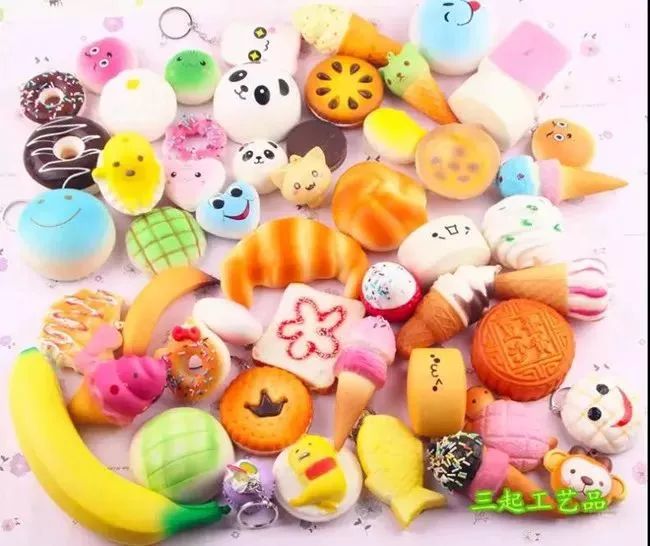 这是一款怎么蹂躏都不会坏,可以用它甩掉“鸭梨山大”的玩具。这款玩具的通用名称叫Squishy,起源于日本,它由黏土做成,造型多为食物,水果和卡通动物,本身是软绵绵的,可以拿在手里挤压。