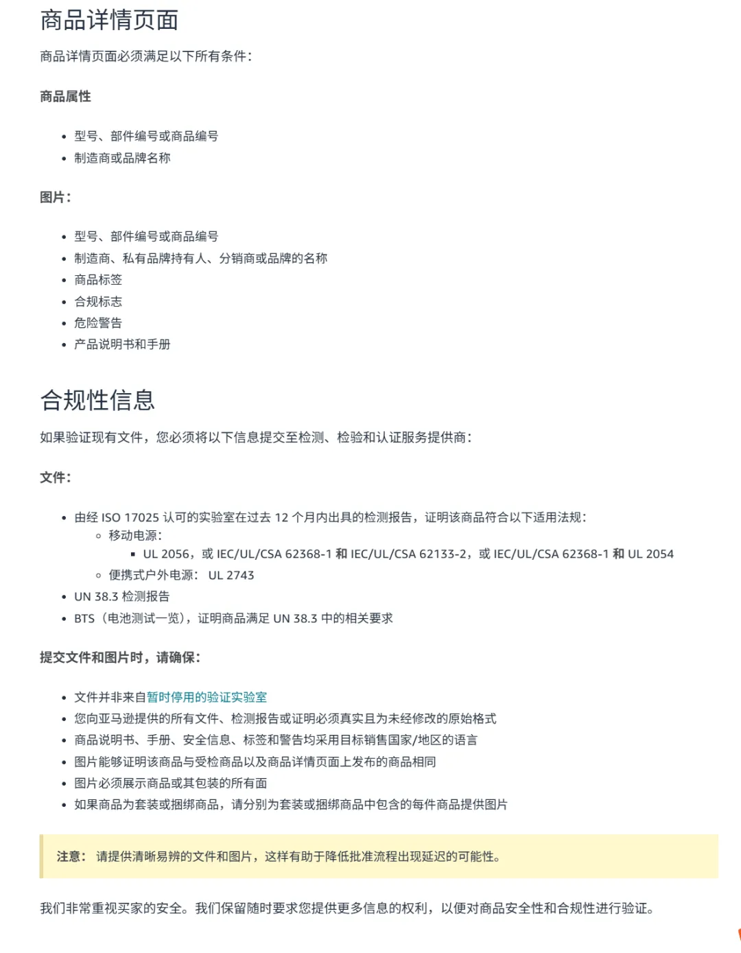便携式电源商品属性和图片在商品详情页面中必须符合相关要求,文件则在合规性信息中必须符合相关要求。