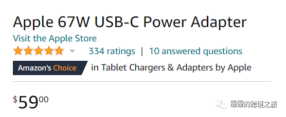 这款产品的标题只有简短的五个关键词-Apple 67W USB-C Power Adapter(苹果 67W USB-C 电源适配器)
