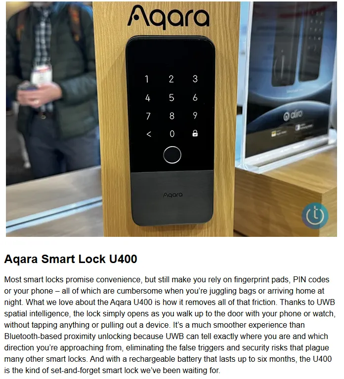 更重要的是,CES2026上,其 U400 智能门锁一举斩获 Tom’s Guide、The Ambient 等多家国际权威媒体大奖,成为展会最受瞩目的智能产品之一,这份专业认可,远比线上千条广告更有说服力。