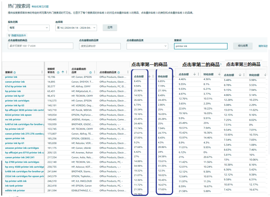 核心大词(比如打印机墨盒类目)的点击和转化,大头都被头部卖家吃了。