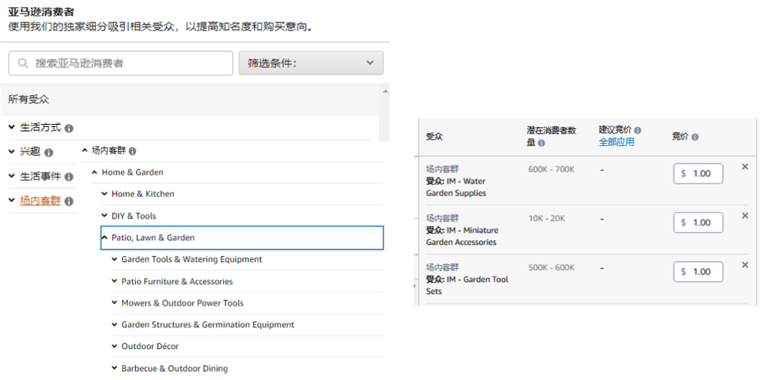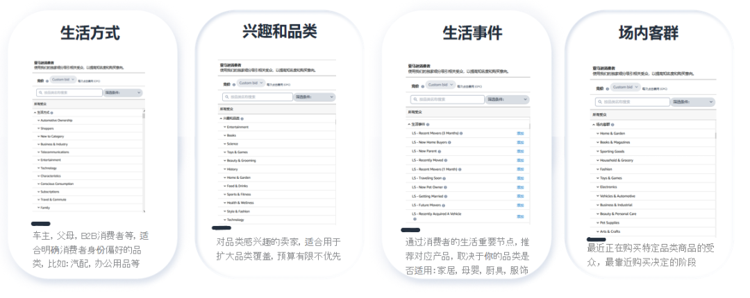 场内客群:借助场内客群细分,卖家可以与正在浏览且最近正在购买特定品类商品的受众进行互动。