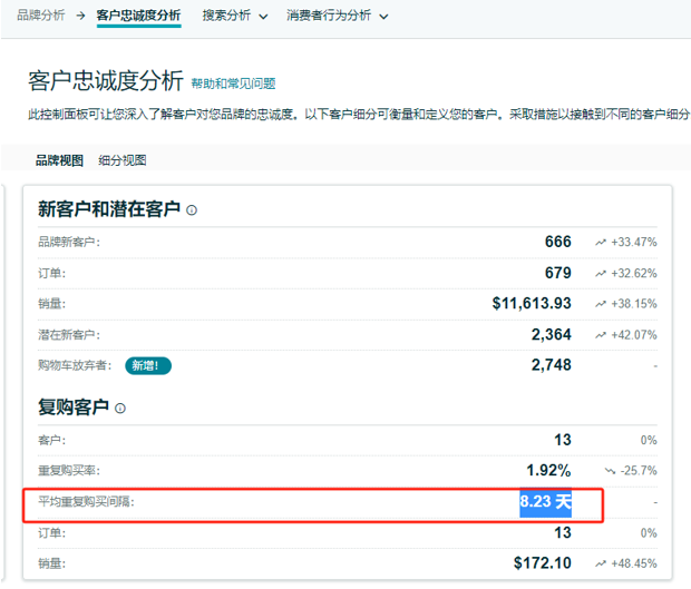 ①利用“品牌分析>客户忠诚度分析”计算产品复购周期
