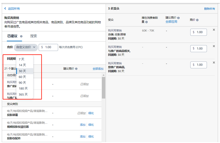 1.选择促销ASIN,结合展示型推广-购买再营销