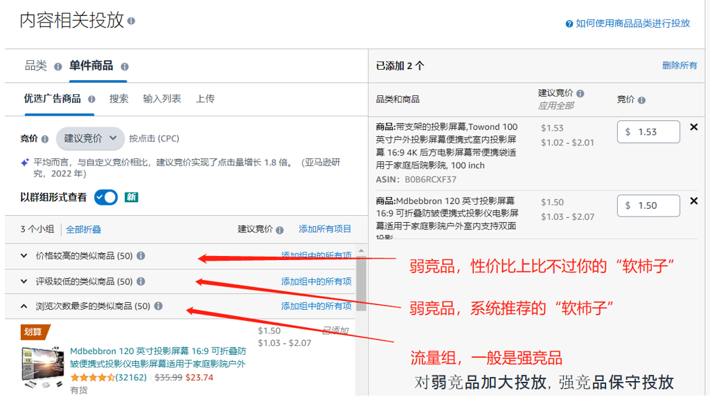 2.选择促销ASIN,结合展示型推广定位竞品,互补产品产品详情页