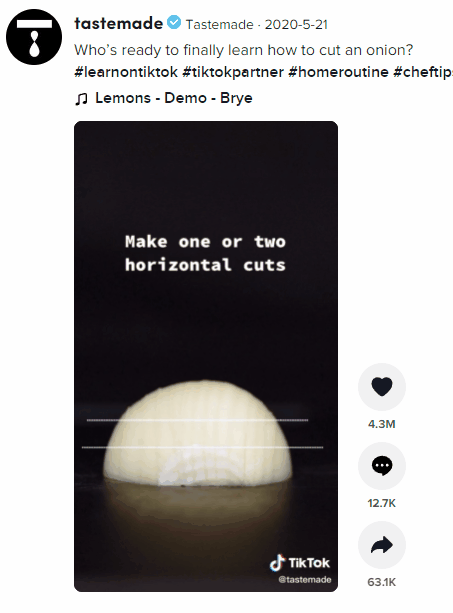 这个关于如何像厨师一样切洋葱的教程有430万次阅读和63100次分享。