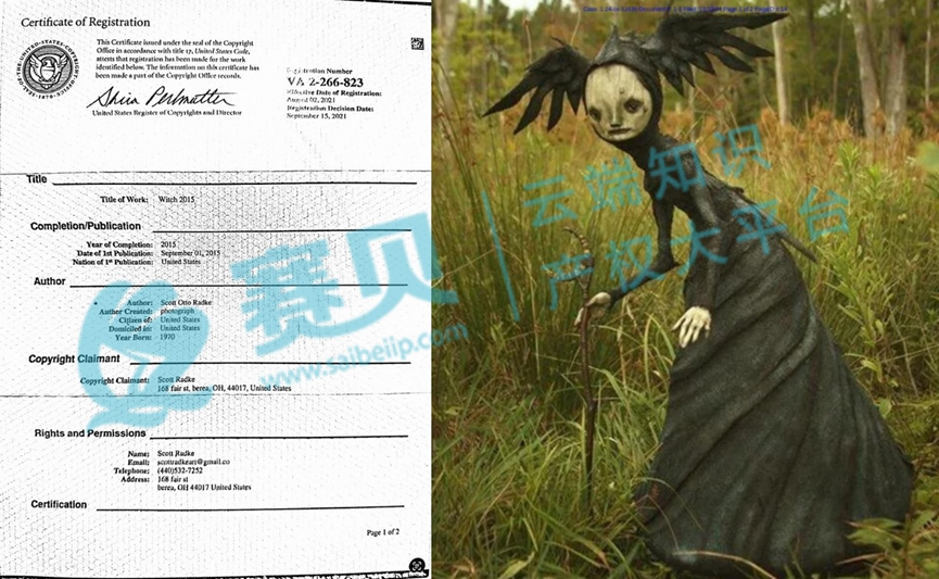 本案涉及以下版权,版权注册号为VA 2-266-823,卖家需要注意Scott Radke的作品都不能随意使用,否则会有侵权风险。