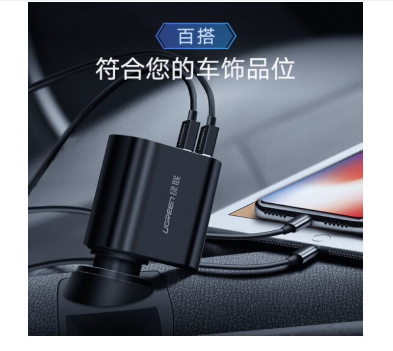商品名称:绿联 车载充电器 点烟器一拖二多功能汽车用品电源转换器分线器插座头一拖三手机快充12v24V车型通用 50295 双usb口3.4A+拓展口