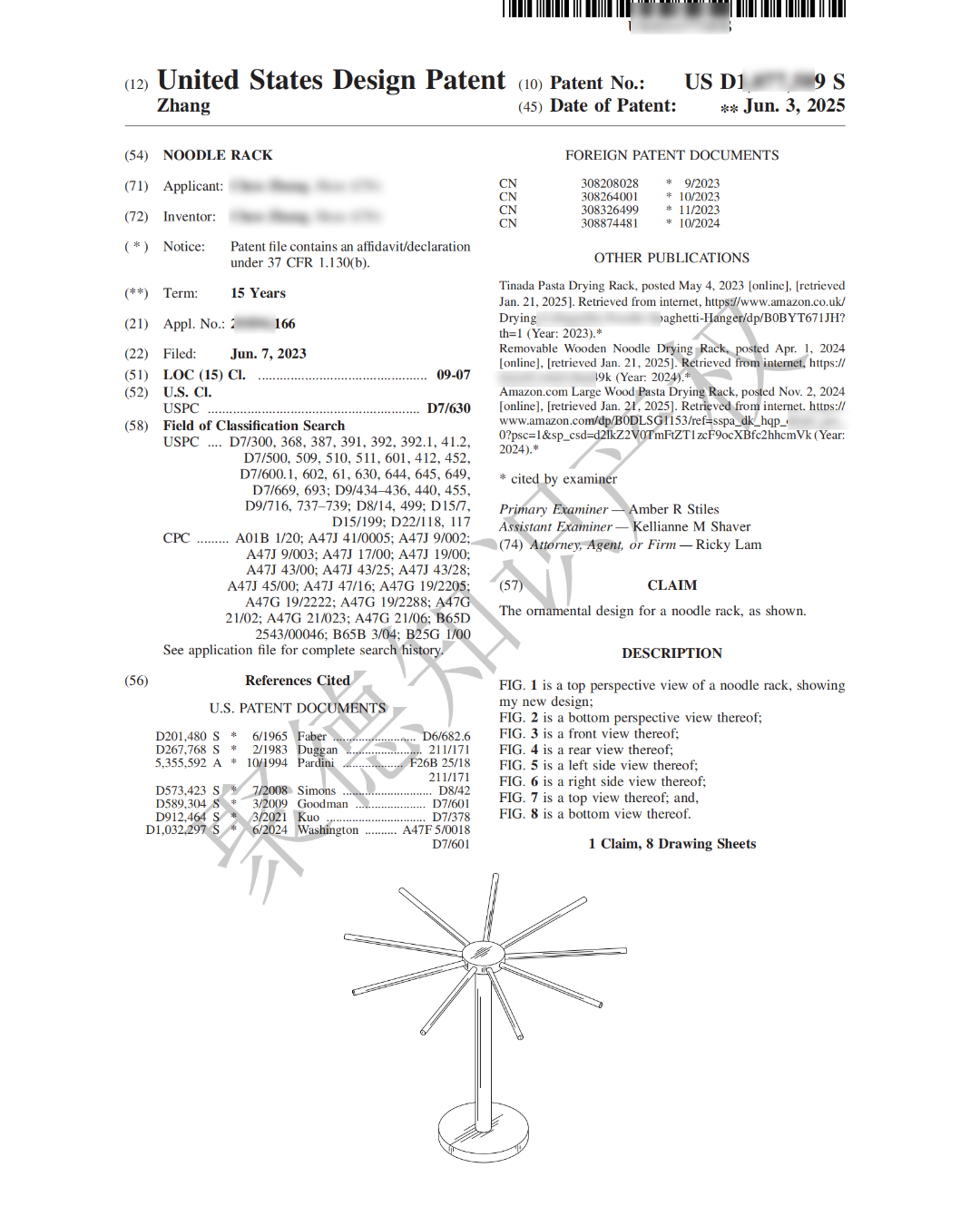 原告的厨房意面晾干架设计极具巧思,可轻松高效地晾晒新鲜意面,可轻松高效地处理大量意面,确保每根面条均匀通风、快速干燥。意面架与圆形底座可便捷拆卸,便于收纳,即使空间有限的厨房也能轻松存放。