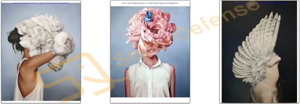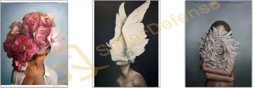 原告 Naomi Claire Judd Tavares 是一位画家,其专业名称为 Amy Judd。原告的作品捕捉了女性与自然的超现实故事,并力求展现引人注目、美丽且充满女性气质的特质。画中人物的面部总是被遮挡,让观者能够融入自己的个人叙事和情感。