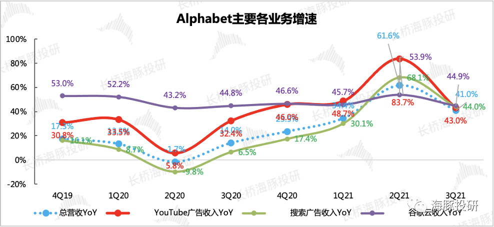 三季度谷歌的业绩在一众广告平台中独自美丽。当然,在此前疫情期间,它受到的影响也最大,可以说谷歌仍然在走一个修复的逻辑。另外我们预计,备受Snap、FB争议的苹果iOS隐私政策对于谷歌来说,不仅影响不大,甚至在搜索广告上短期还可以获益。 这次表现不及预期的主要是云业务以及YouTube广告,云业务盈利改善趋势暂时打破,YouTube身处视频潮流中心,尽管也推出了短视频Shorts,但成长速度不及同行,而TikTok势头高昂,结合奈飞、FB高管电话会,TikTok是目前各流媒体平台中极为强劲的竞对玩家。 按照市场一致预期,对应2021(调整后)、2022业绩,当前GOOGL.US PE分别26倍、24倍,位于历史中枢水平。 四季度销售旺季有望带动业绩继续表现,进一步消化估值。