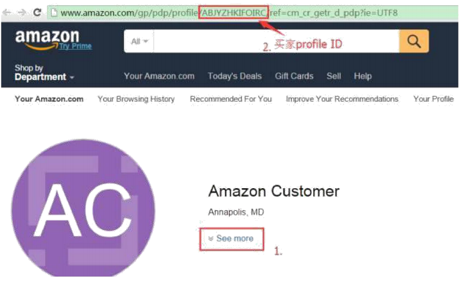 其次:第1步,点击seemore看有没有邮箱,没有继续第2步,查看买家ProfileID,并将此ID复制下来,如下图