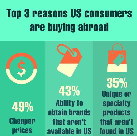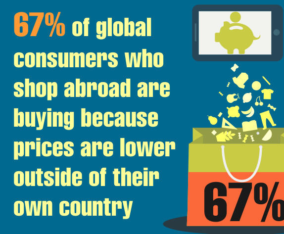 数据显示,全球有35%的消费者会在其它国家网站购物,相比2014年的26%,有了较大的增长。其中有67%的跨境购物者表示,国外产品价格较低,是他们进行跨境购物的主要原因。