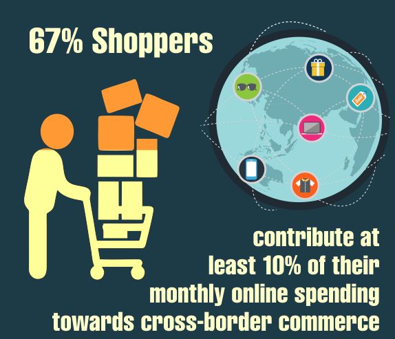 67%的消费者每月至少10%的电商购物支出流向跨境购物。