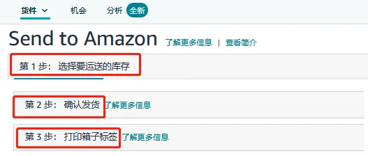 新建一个货件工作流程,完成“SendtoAmazon”中的“第1步-选择要运送的库存”即可。