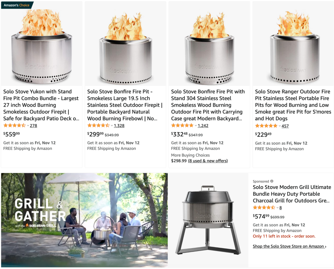 和大多数美国垂直品牌的头牌一样,Solo Stove的户外炉具也是走优质高值的路线,单个产品都是几百美元的。亚马逊是Solo Stove最重要的渠道之一,很多户外品牌的卖家都会见过这个品牌。在亚马逊上,Solo Stove的Review几乎都能做到4.5分以上。
