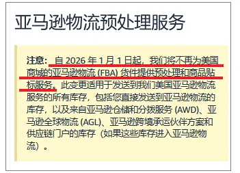 自1月1日起,运行超过十年的FBA商品预处理与贴标服务被全面终止,卖家需自行承担所有合规操作,不合规货物将面临直接弃置。
