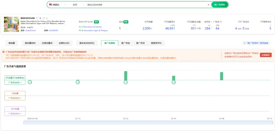复活节装饰也是同一个剧本。2月22号到28号是广告投入的峰值期,3月1号到7号逐步下降,3月8号到14号又小幅拉升了一把——(我猜是看到某个词的自然排名还没稳住,补了一脚)——然后彻底交给自然流量。
