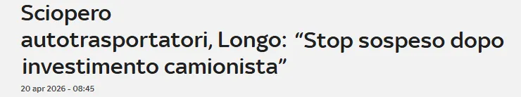 最新报道,原计划从4月20日至25日的意大利全国道路运输罢工发生重大变化。罢工行动在启动后因一名卡车司机组织抗议时被车辆撞击身亡而迅速暂停。