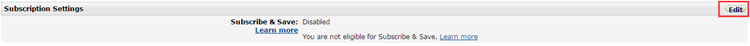 1、在卖家账户的Fulfilment by Amazon settings中找到“Subscription Settings”,点击 Edit 。然后点击“Enable Subscribe & Save”,就启用了Subscribe & Save计划。