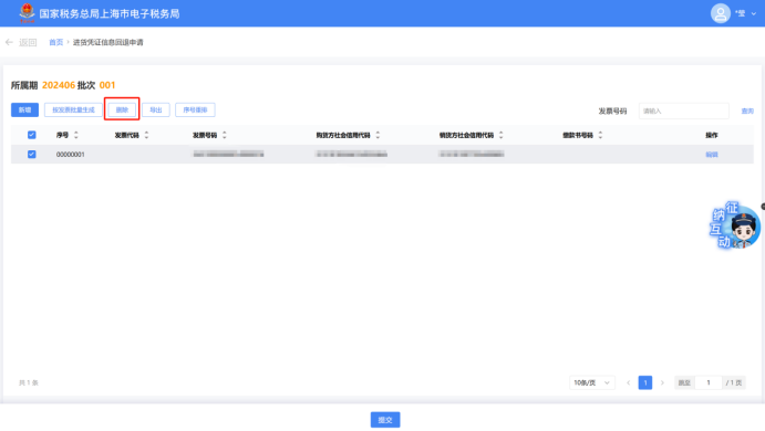 勾选需要删除的记录,点击【删除】按钮,删除不需要的数据。