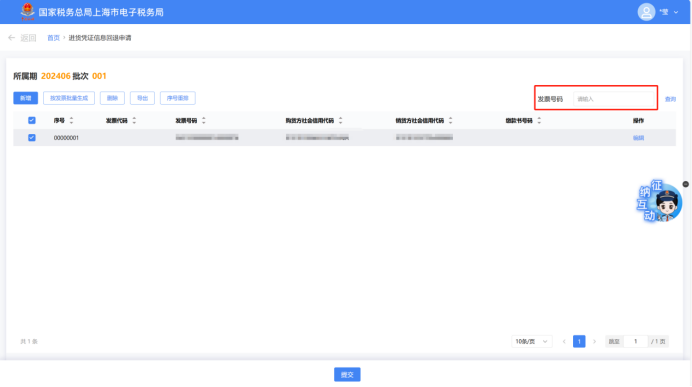 可录入“发票号码”筛选条件,点击【查询】按钮进行查询。