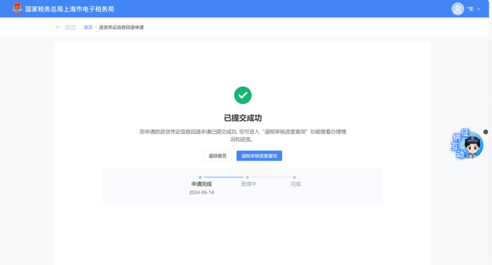 税务机关受理审核完成后,纳税人可在新电子税局查看该流程结果。