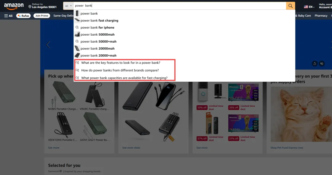 但从COSMO和Rufus上线后,这个逻辑正在被改变。COSMO和Rufus的核心能力,不是识别字符,而是理解语义。不再关心你有没有精准匹配“power bank”这个单词,它可能理解的是一种能在手机电量低时提供安全感的便携设备,关心的是这个产品是不是解决买家的意图需求。